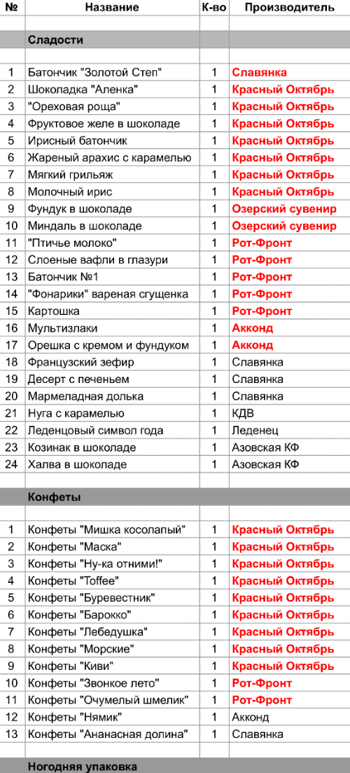 1. Проверить, можно ли внести изменения в состав подарка. Если нет, то скорее всего наборы были собраны еще летом из конфет, произведенных еще раньше